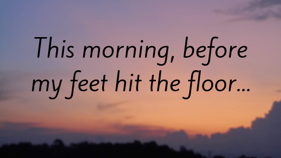 Earlier this week, I tweeted how my morning prayer starts. Before I’ve said a word aloud, before I begin my first routines, before my head rises from the pillow, I start my prayer with, “Before my feet hit the floor…” I want my first thoughts in the morning to be directed to the Lord.