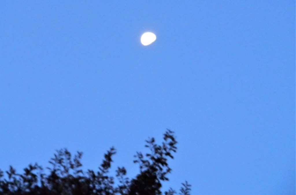 4:30 – The moon looks great through cloudy skies.  I think I’ll take a picture. Go back in to get camera. Drop it and don’t like the sound it makes.