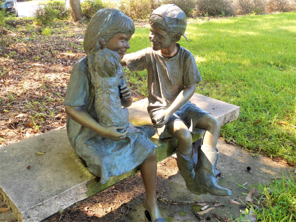 I’ve shown other pieces from this sculpture garden in my blog. Most are children, like this bronze paper boy on his bike,