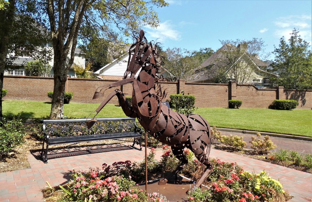 A neighborhood, that used to be a rural area with riding stables, gives a nod to its past in this tiny park.