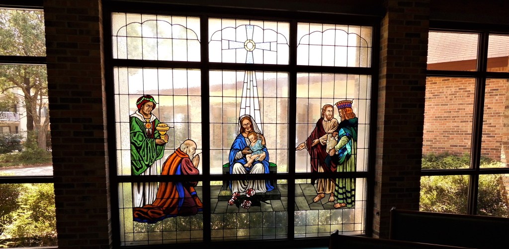 As I uploaded them to my computer, I saw what I didn’t see when I was in that sanctuary. The manger at the center back of the platform was raised. I looked at the close-up shot and gasped as I realized it looked like a catafalque.