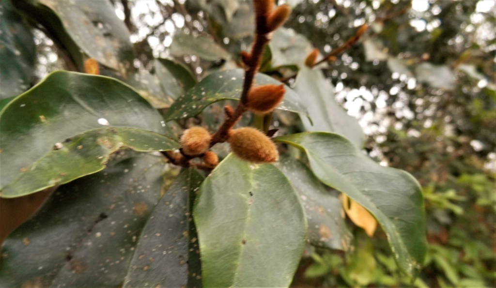 These fuzzy brown buds are on the banana shrub. It’s purely ornamental, so no fruit, and no relation to the other kind of banana. However, when it blooms, the lovely scent of bananas will fill this corner of the garden.
