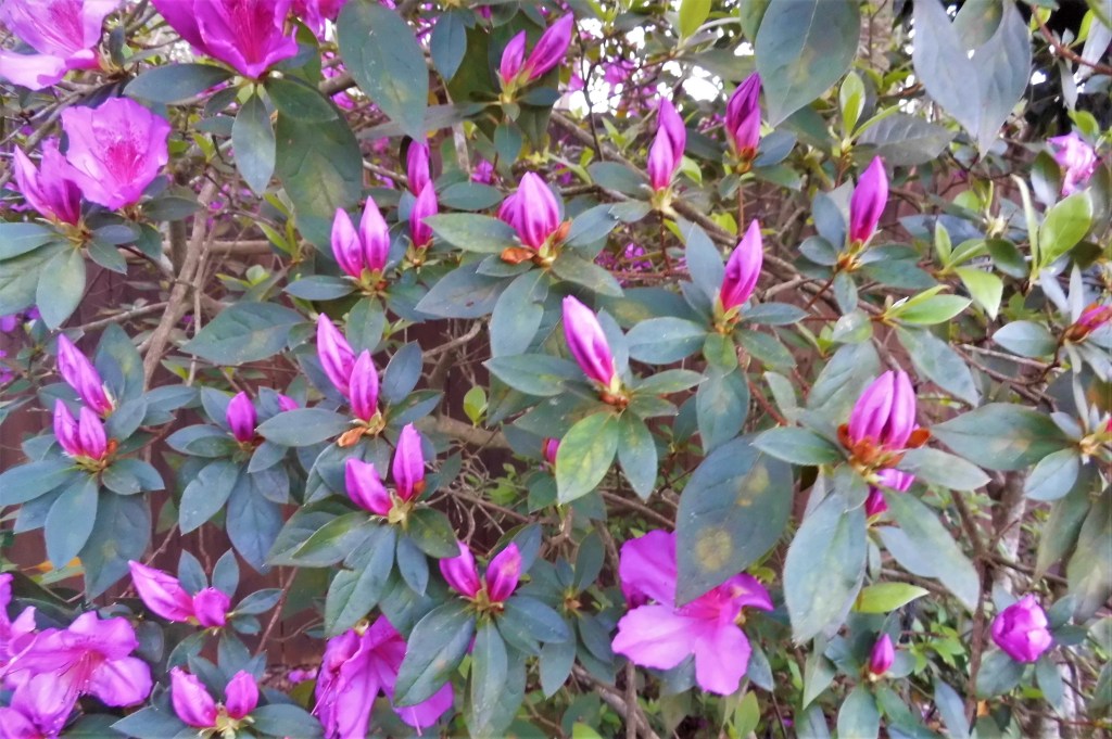 Finally, the Formosa azaleas, which may be my favorite, are starting to bloom and are covered in buds. This is a rich, deep fuschia.