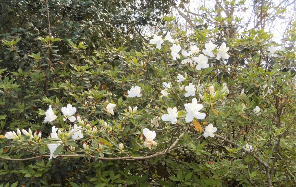 I have seven or eight of these white Mrs. G.G. Gerbing azaleas. They tend to be a little later than the others, especially in my north-facing front yard.