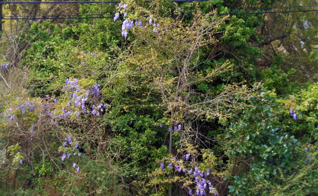 We aren’t venturing out of the yard much, since we’re trying to comply with the social distancing requirements, but when I went out Monday, I saw this wisteria blooming on someone else’s property. It’s lovely – in someone else’s yard. Perhaps I’ll tell you about my experience with it some other time.
