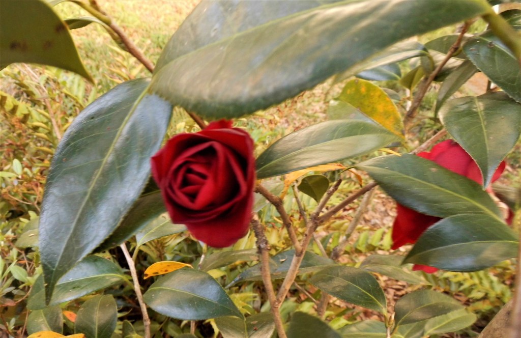 Okay, I know I’ve shown pictures of my favorite camellia a lot on this blog, but I wanted to share one more. There’s a fleeting moment when the buds look very rose-like as they’re opening. Isn’t this pretty?