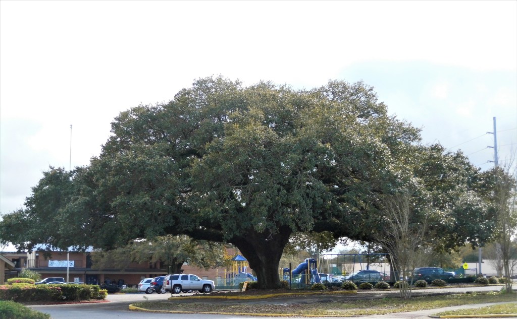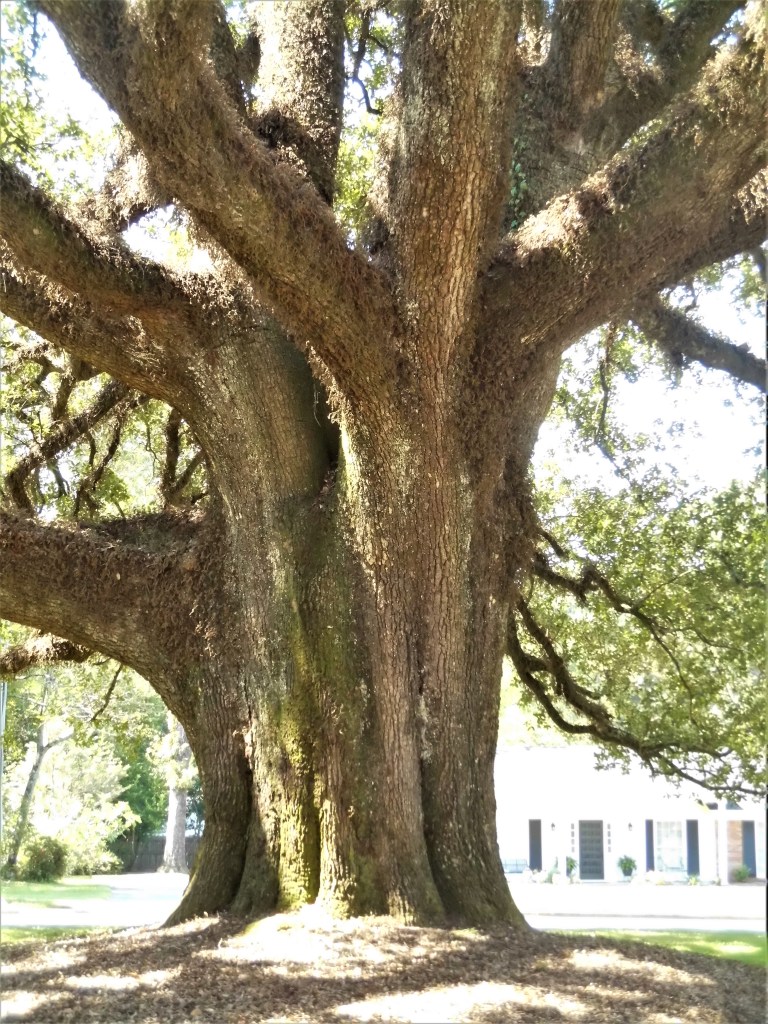 However, our Gulf Coast area is know for its live oaks. Many of them are hundreds of years old and line our city streets. Live oaks are considered evergreens that grow up to 80 feet tall and twice as wide. The first picture at top looks like a good example.