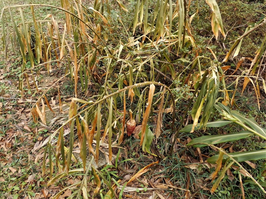 Below, you see gingers with shriveled leaves, and the beautiful red “pinecones” have definitely become booglified.