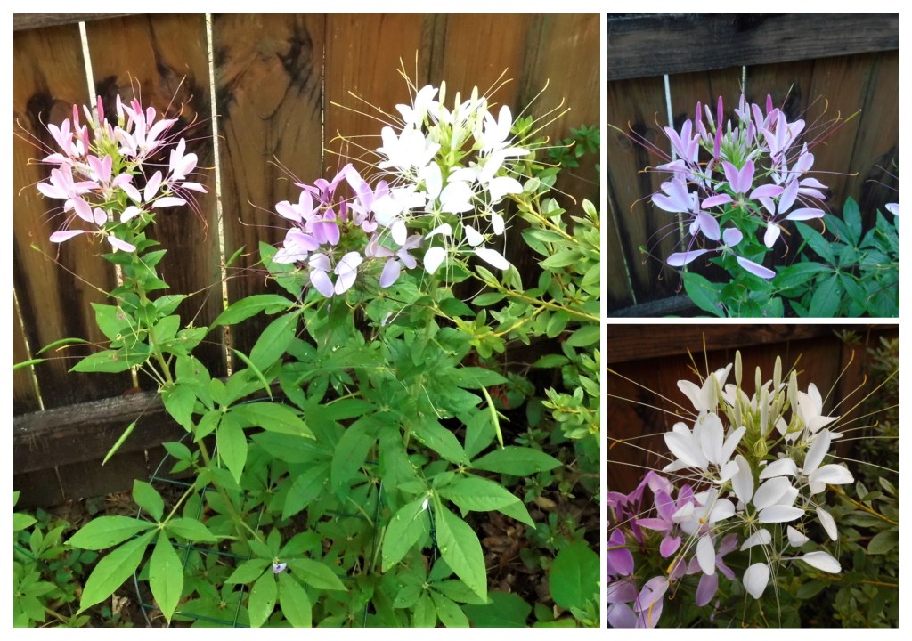 I’ve never planted cleome (cleome hassleriana) before, and at first, I wasn’t impressed with the blooms. But they keep opening up on these multi-flowered clusters, and I wish I’d planted more. It’s also called spider flower or grandfather’s whiskers.