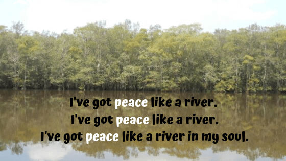 Do you remember the little chorus, “I’ve got peace like a river?” Where do you go to find peace? How would you describe that feeling of peace “in my soul” to someone else?