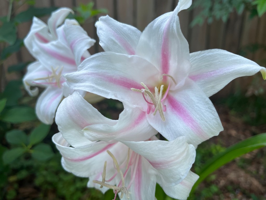 My mother gave me three Crinums about thirty years ago. These giant bulbs are old southern favorites. Unfortunately, I have only one left due to my mismanagement and neglect. I’m trying to take better care of it now, especially since they sell for up to $30.00 per bulb. The one you see above is known as Milk and Wine Lily.