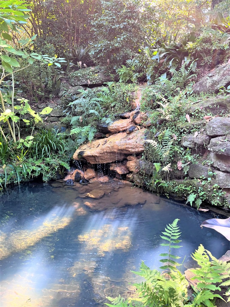 We made the grand circuit around most sections of the gardens, and I’d love to show you more, but I’m sticking with six today. In past posts, I’ve shown you other sections at different times of the year. I enjoy the many water features in every area: the river, lakes, streams, pools, fountains, and outflows from artesian wells. We welcomed moving into those shady stretches, and the sound of water running over the rocks gave a little respite from the afternoon heat.
