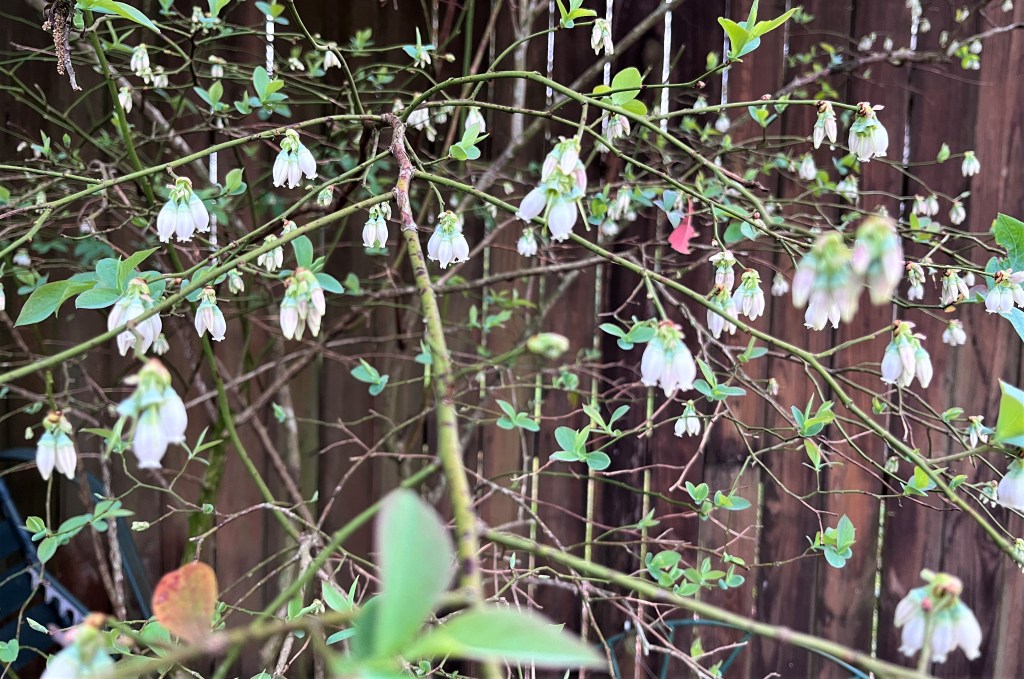 If you look closely at the blueberry blossoms, they look like old-fashioned ladies’ “bloomers.” I wonder if that’s where the name came from.