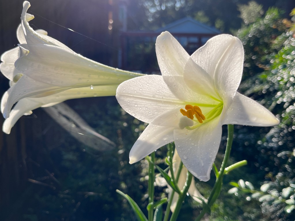These Easter lilies have been blooming for a couple of weeks also. I think I had about eight buds that are just now completing their flowering.