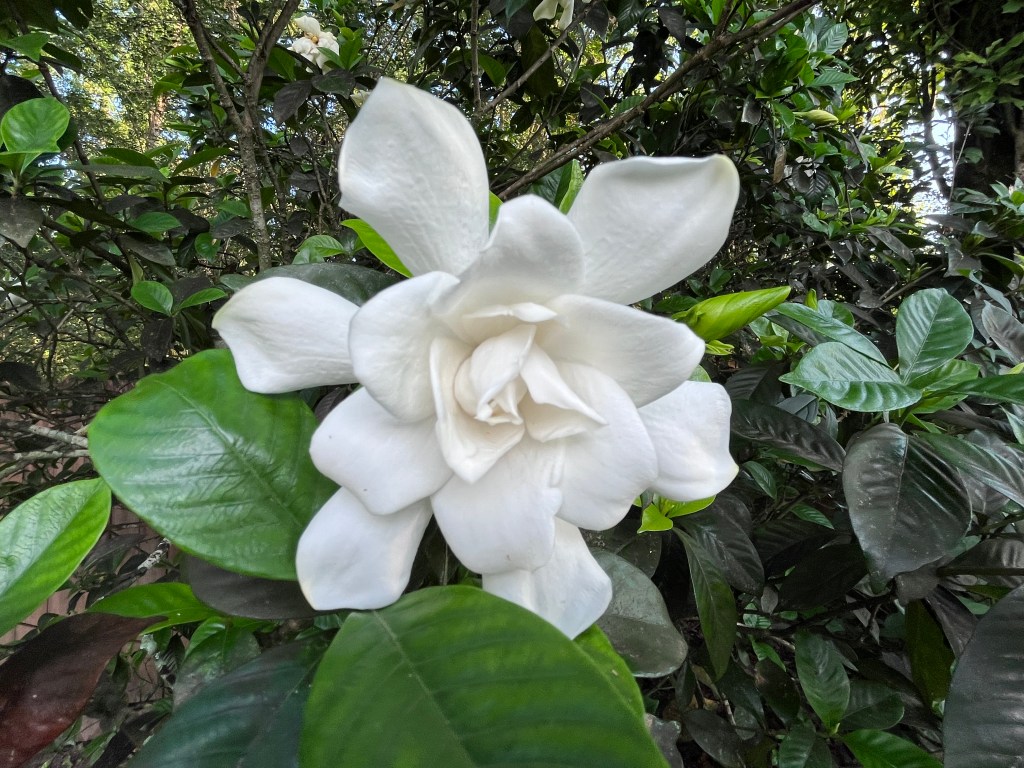 Finally, my large gardenia by the back fence gate started blooming this week. I noticed the fragrance before I saw the first flowers. As Shep and I make our morning and evening rounds, I catch that nice gardenia aroma a dozen feet away. I haven’t yet, but I plan to bring a little bouquet inside to enjoy the scent in the house.