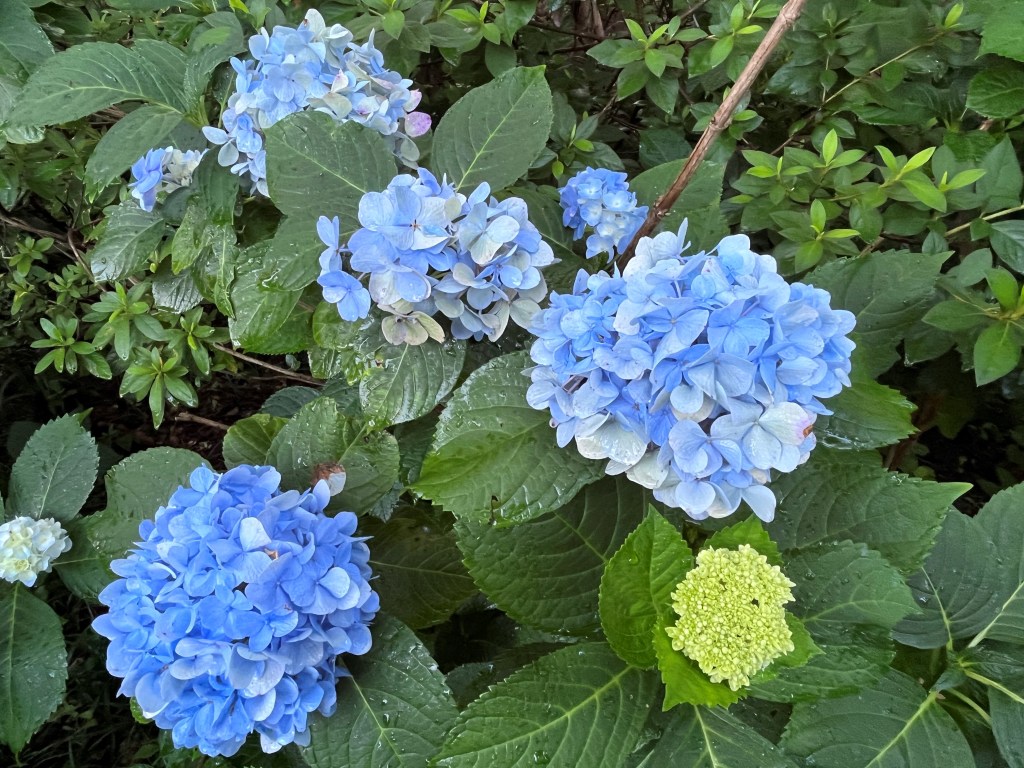 My hydrangeas dot the borders with their stunning blues, but they’re fading quickly to that weird purplish-greenish color already. I can find some beauty in that phase too.