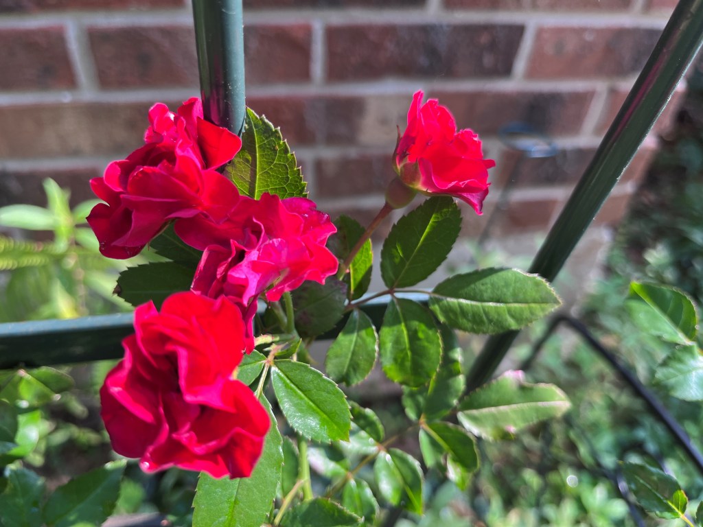 I bought a couple of small Red Drift roses to keep it company in this small sunny corner.