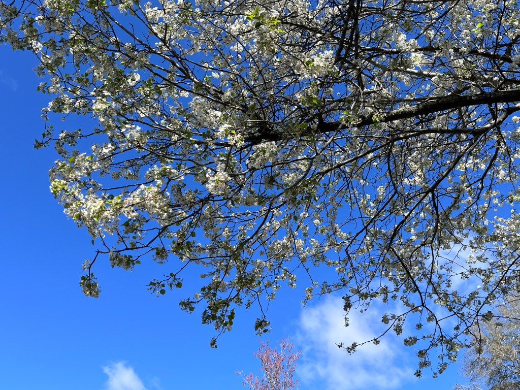 We had several grey days, but against the blue sky, the blossoms were spectacular.