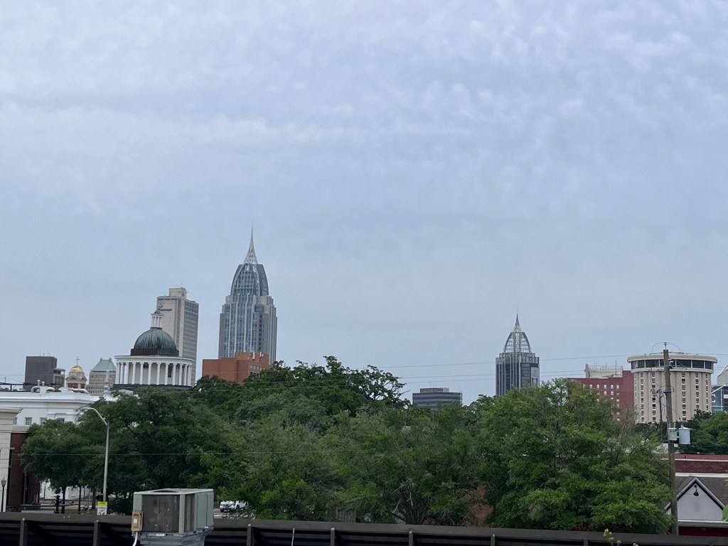 A rooftop patio on this house offers a view of the Mobile skyline.
